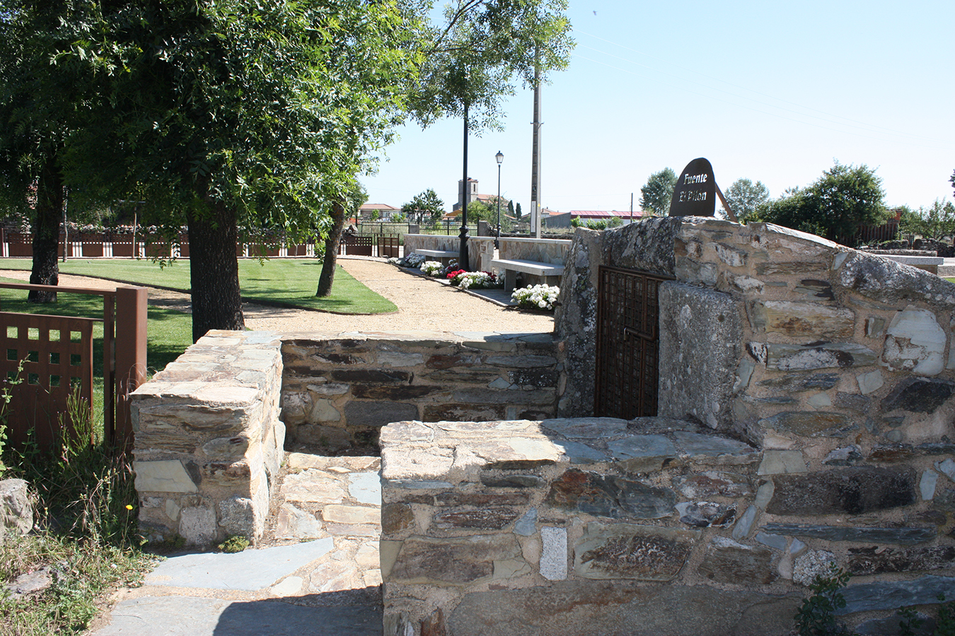 Junto a la Fuente de Santiago se encuentra una pequeña y cuidada zona ajardinada por la que pasear y en la que también se puede encontrar la Fuente de El Pilón